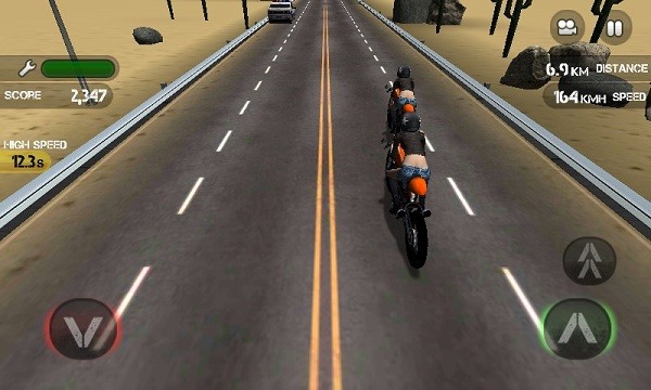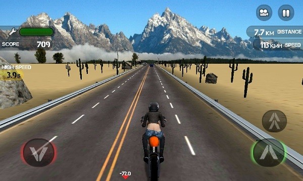 《摩托交通比赛 Race the Traffic Moto》是一款公路摩托竞速游戏。比赛发生在一条没有弯道的公路上,你只需开足马力躲避沿途汽车即可,一旦撞上可会在瞬间飞出跑道哟!