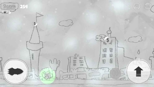 重力和射击游戏,比普通飞机更有趣的游戏,黑白纸手绘的场景,不一样的体验。