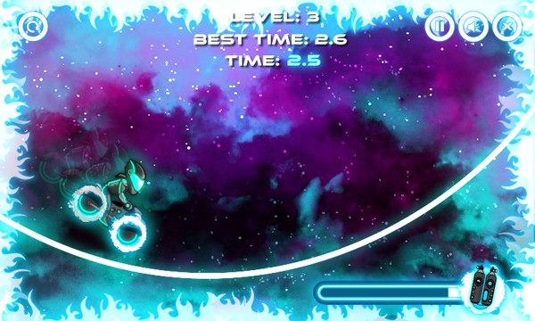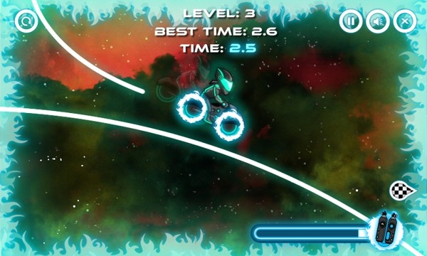 霓虹灯越野摩托车 Neon Motocross:一款线条感很强的赛车游戏,游戏中玩家可以通过点击屏幕获得加速冲过一个个坎并可以根据自己骑行的角度做出各式各样的花式动作,在做出花式动作时游戏中的霓虹灯将会亮起将你带入另一个世界。