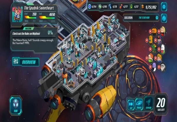 看!土豆们的宇宙飞船?!在这里,你将随着凯西和费伊姐妹跨越数十个蔬菜星球和宇宙去拯救他们最亲爱的土豆外公。在冒险途中,你将会管理你的飞船,打造上百种武器并探索各种广阔无垠的蔬菜行星!除此之外,你的在冒险中的抉择还将影响到你和可爱的蔬菜船员的故事的发展,或许你还有可能会遇到熟悉的面孔!