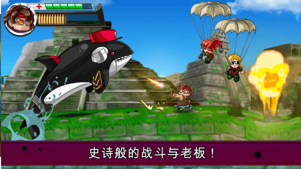 创建一队士兵,伞兵,火箭发射器和敌方潜艇,在你将所有武器库放在其上时,躲避子弹的冰雹。在你跑步期间,获得能量提升你的火力,并收集硬币升级你的枪和工艺新齿轮。