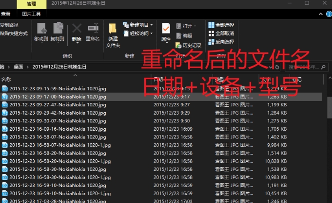 第三种:如果前两种都不满足,则通过读取照片文件在电脑中的创建时间来重命名。