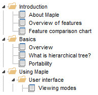 将数据存储在名为节点的单元中,这些节点像树的叶子一样链接在一起,即由分支连接在一起,所有这些都源自同一根。这类似于硬盘上的文件和文件夹。每个节点包含一个文章。文章类似于可以在文字处理器中进行编辑的文档。Maple带有自己强大的内置文字处理器,使您可以直接编辑文章。