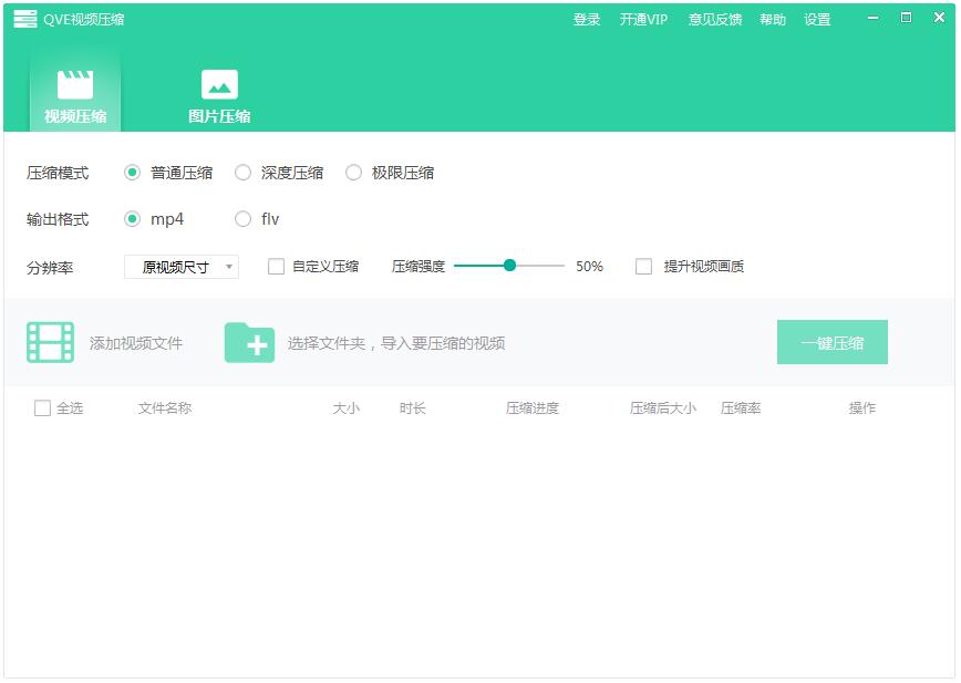 QVE视频压缩能够完成把各类视频格式都转换为通用的MP4以及FLV格式的文件,此外还可以完成图片格式的压缩,在页面上可设置所有文件的压缩强度,可供勾选自定义压缩以及提升视频图像画质,具备普通、深度、极限三类压缩模式,依照用户对于视频图像传输的需求决定转换的模式,最大程度保留源格式文件的素质。