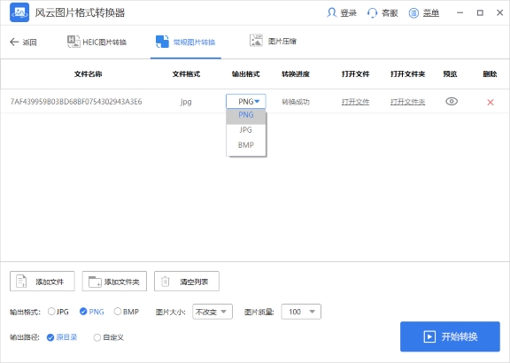 2、JPG、PNG、BMP等图片格式之间一键互转,支持批量操作