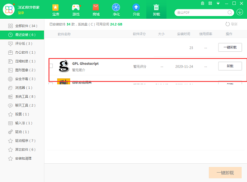 方法二:安装并打开360软件管家,在卸载选项的列表中找到软件,点击卸载即可。