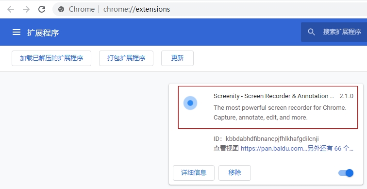 5、如果没有插件按钮的话,用户还可以通过Chrome扩展管理器找到已经安装的插件,点击在文件夹中显示