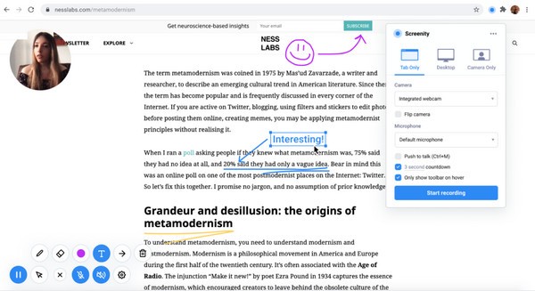 Screenity插件适用于所有采用谷歌内核的浏览器作为插件使用,自然对于原生谷歌浏览器的支持度最佳,这款插件是录屏功能的集合,主要起到在本地工作或者是浏览网页的时候自动录屏捕捉屏幕上显示的所有内容,在整个过程内随时把不要的部分做裁剪处置,使得保存下来的素材可以做到安全性和针对性统一。
