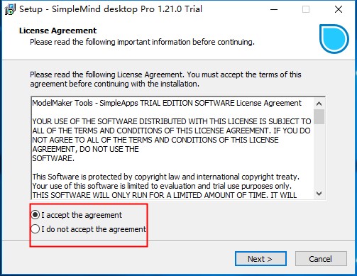 1、下载打开SimpleMind Pro最新安装包,勾选安装协议