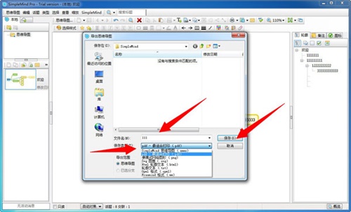 2、这个时候就会弹出具体的保存界面,我们根据自己的要求设置文件名及保存格式,最后点击保存即可,其中软件的思维导图格式是smmx。