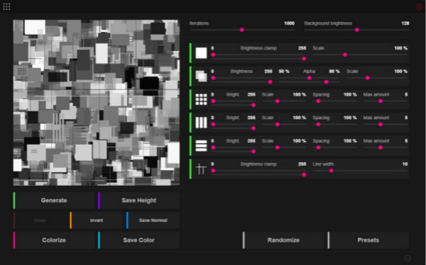 Jsplacement这款图像处理应用的特性就在于基础的编辑处理基础上,还增加了利用程序源码来辅助处理的模式,主要支持的是HTML以及Javascript,而其定位是处理画幅巨大的地图,尤其是各种是三维立体下的地图模型结构,最高支持到8192X8192的PNG图像格式的输出,随时对画面光线和背景图层进行优化。