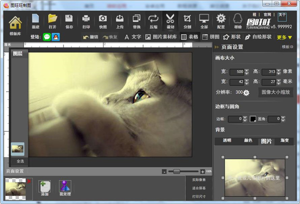 图旺旺制图软件虽说在设计性上没有专业级的应用来的美观,但是其主打的优势就是功能项的完整性以及提供最纯粹的图像编辑体验,支持导入JPG、PNG以及BMP等一系列常用的图像格式文件,此外还根据不同行业的需要设置了买农夫素材库,图像的参数都是默认显示的,这样对于固定上传图像大小的站点就特别实用。
