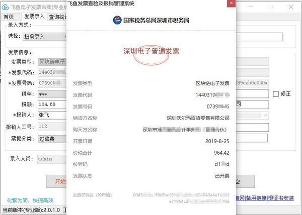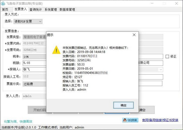 6、自动记录每张发票的发票信息、报销人、录入方式等多种信息;