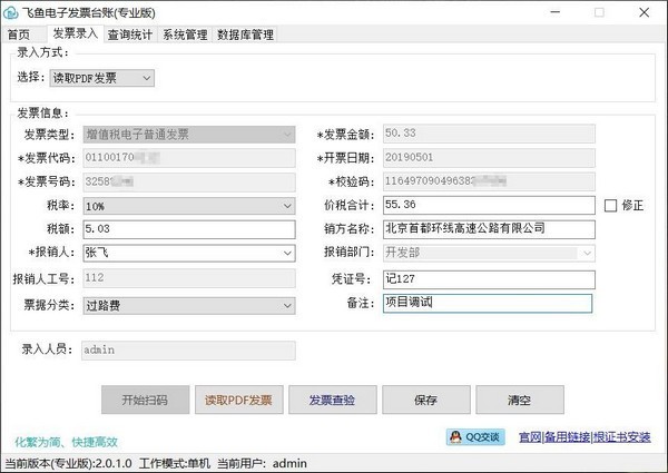 支持直接读取PDF格式的电子发票,自动获取票面上所有内容,更全面,可以节省购买扫码枪的费用;