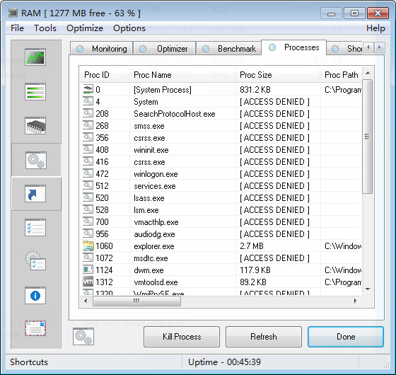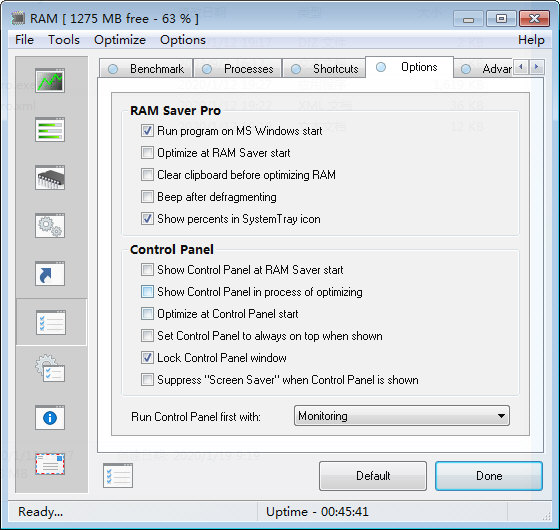 内存的大小和性能对于运行大量的应用程序影响颇大,尤其是在功能性越来越丰富的时代,内存的优化使用显得极为重要,RAM Saver Professional工具由外网引进,获得系统最高管理员权限后可常驻后台监控电脑内存占用的变化,尤其是要注意其中自启动和无关的内存占用,及时清理和禁止来优化流畅度和相应速度。