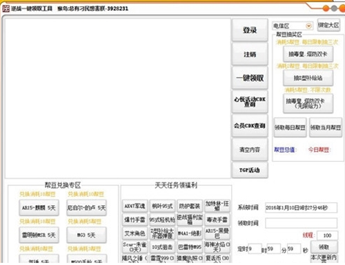1、下载并运行逆战自动领活动软件,登陆你的QQ号,点击【一键领取】,然后方能领取各种活动奖励。
