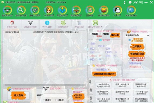 助手包含逆战福利 任意查询仓库,CF福利,帮豆,各类签到,帮豆批量抽奖等功能.