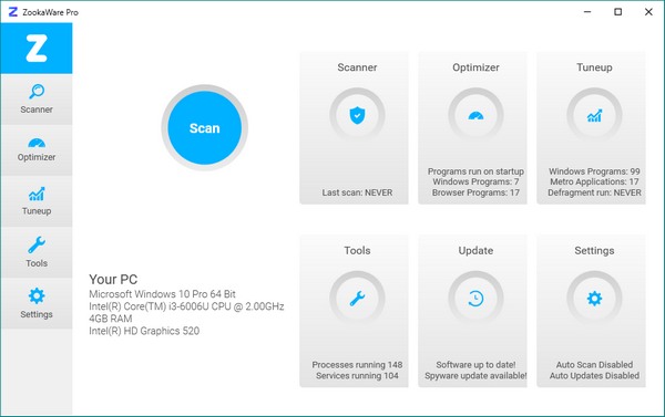 ZookaWare Pro工具的UI布局很是干净,尤其是各种功能项的设置特别细致,按照用户电脑本地的实际情况使用相对应的清理模式,为用户电脑提供全天候的检测监控服务,可把各类垃圾文件、注册表信息、不常用软件、硬盘碎片信息等全部罗列出来,不强制用户完全清理,把确认已经完全无效的快速清理。