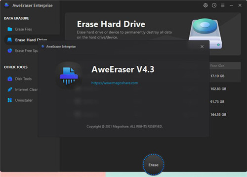 电脑只要使用过都有相关的痕迹,尤其是一些涉及到安全隐私的数据信息需要及时进行清理,而Magoshare AweEraser正是用来对电脑内部的硬盘以及外接的移动存储设备的数据进行整体擦除的工具,自然涉及到文件注册表以及内部系统补丁等,特别要注意的就是浏览器,因为对接网络因此要有清理的习惯。