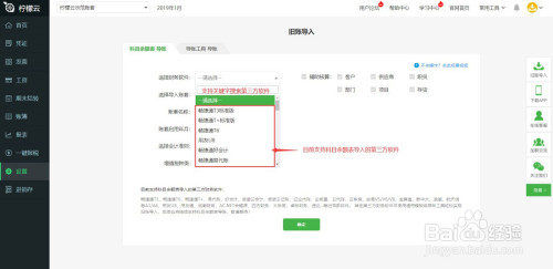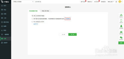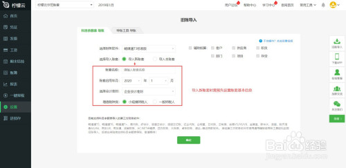 (1) 登录柠檬财务软件进入功能入口:选择主菜单设置中的旧账导入