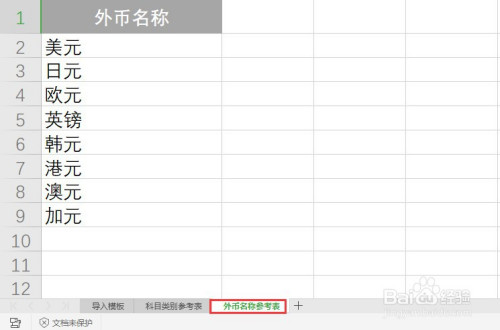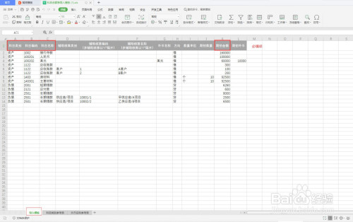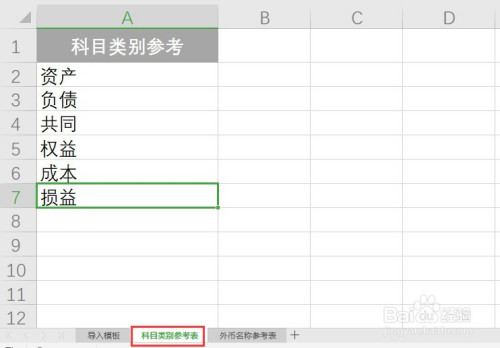 ②工作表1是导入期初的具体信息,工作表2是科目类别参考表,工作表3是外币名称参考表。科目类别、科目编码、科目名称和期初金额是必填项。