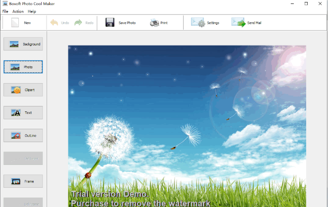 Boxoft Photos Cool Maker(照片美化软件)拥有多种易操作的图片编辑手段,您可以根据自己的需要添加蒙版、特色效果或者剪贴图,支持启用带有差异帧的边缘图像,并能在指定尺寸的纸张上自动排列相片进行打印。