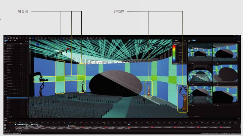 协同联机后的两台服务器可配合调节投影机融会等耗时任务。