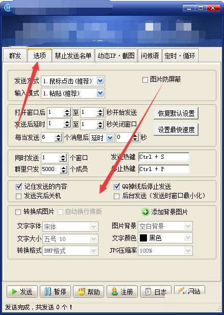 必需用最新版本的群发软件。选项外面设置同时只发1个窗口。