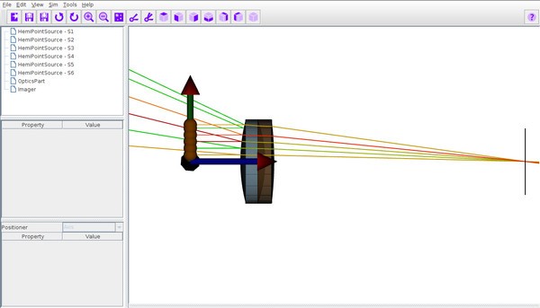 该程序内置有对象库和光学系统模板,可以直接添加到工作区中,但是目前不支持用户自定义创建对象。在搭建好需要的系统之后,可交由该程序计算光的传播路径,并生成模拟图像,还可以不断试验,找到最佳参数方案。
