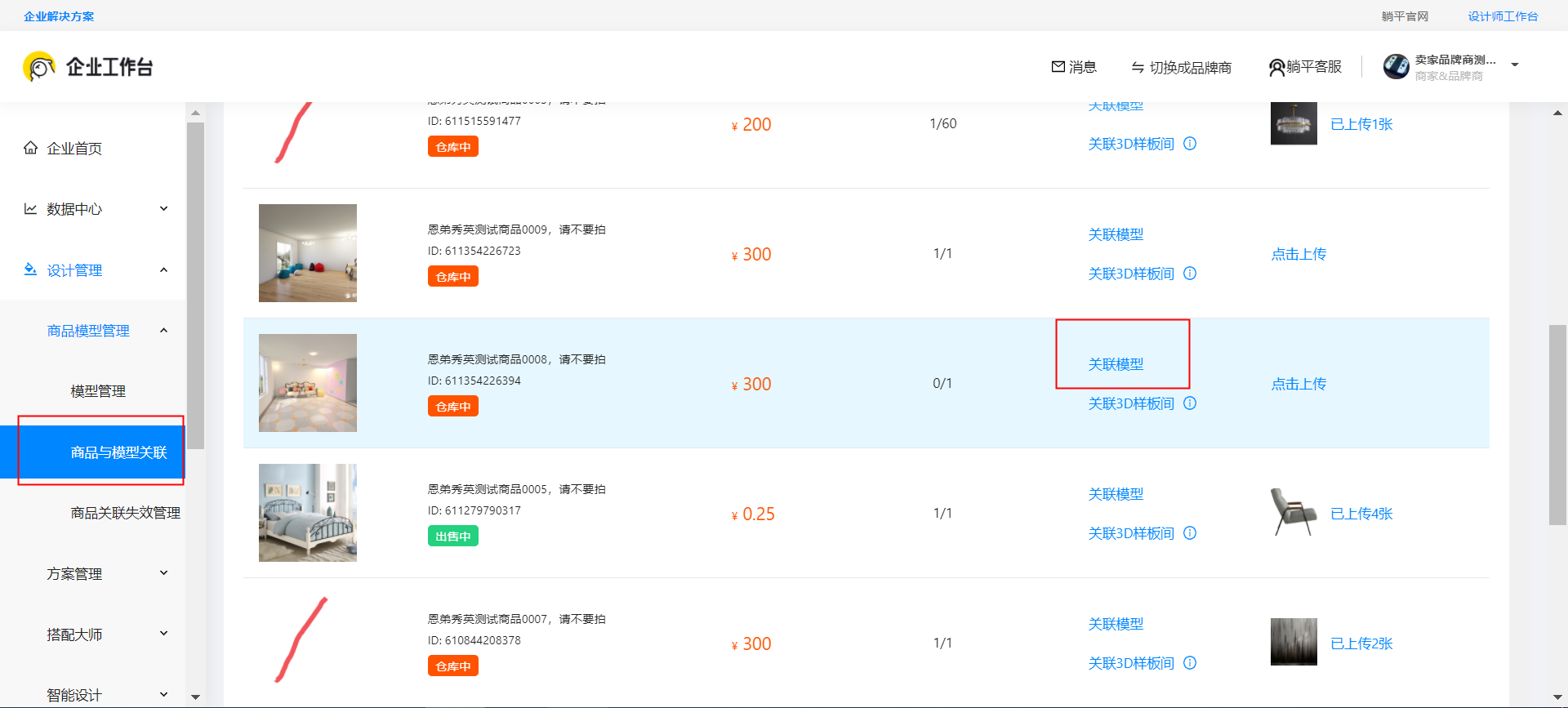 在设计办理-商品模型办理-商品与模型联系关系,操作便可;