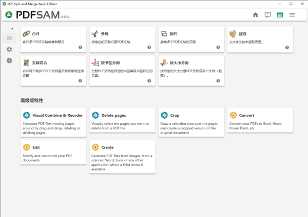 PDF Split and Merge软件蕴含PDF文件的合并,分割,旋转,信息提取等多个处理项目,另外还支持这些文件的即时内容编辑以及文档改良处理,并达成批量文档的格式互相转换,将指定PDF文件的页面输出单独分割以及输出印制,让用户感受PDF类文件的一站式处理服务。