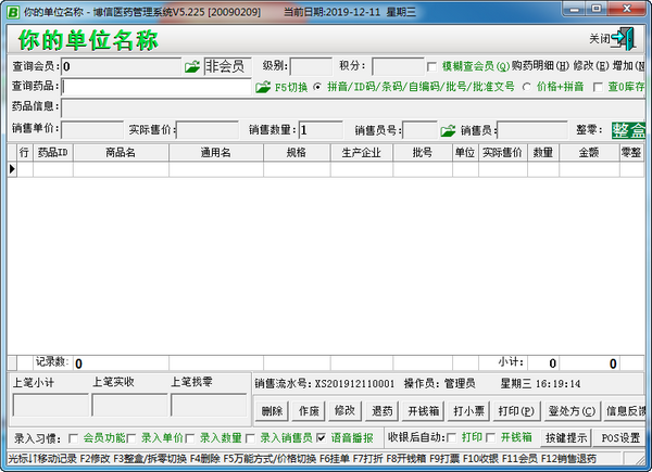2、药品入库、出库、老板拿货、赠予亲朋、报损,调价。