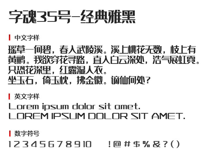 字魂经典雅黑电脑版字形更显方正,不会出现歪歪扭扭的情况,给人的印象更偏向于端正。该字体结构更显端正,让人看着更觉大气,该字体的笔势更工整,气势也更浑厚,让你能够从中感受到古朴、厚重的意味,该字体适合用在杂志上面。