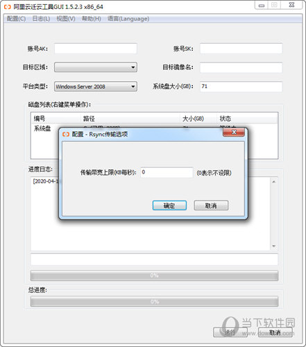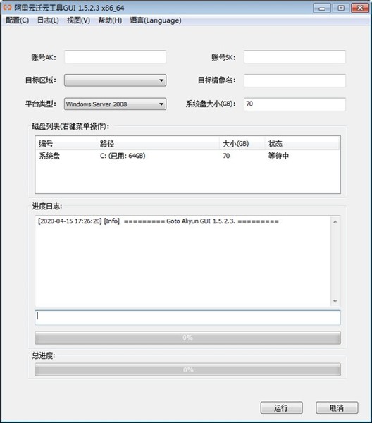 阿里云迁云工具是官方的云端空间迁移服务工具,启动后查看到具体的账号AK以及Sk信息,此外还有目标区域,镜像名,平台类型以及系统盘的大小,并在下方展示出磁盘列表,同步输出传输日志,将内部存储空间完成迁移转换后,迅速完成分区以及存储分配,并与工作项目重新连接。