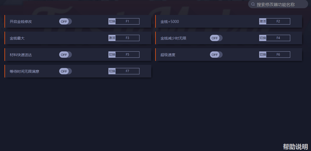 3.开启修改器各主初始项再使用各子修改项[无主初始项则不用开启][主初始项:如开启...修改]。