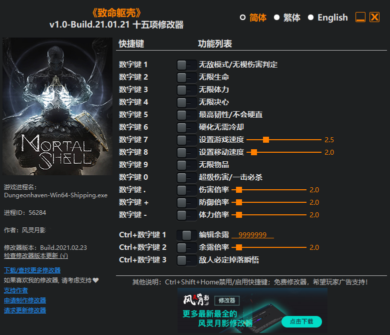 以上就是关于《致命躯壳》十五项修改器风灵月影版的全部使用说明了,如果你还想要各种性能强大的相关游戏辅助软件就快快在游戏爱好者网站寻找吧!