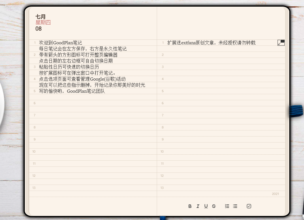 GoodPlan-每一天条记插件是一款不花钱且精彩的条记东西。