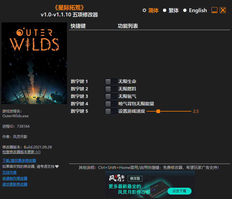 以上就是关于《星际拓荒》五项修改器风灵月影版的简单介绍,会给你提供更多实用的游戏辅助软件,让你能有更好的游戏体验,想要了解更多的话就请来游戏爱好者逛逛吧!