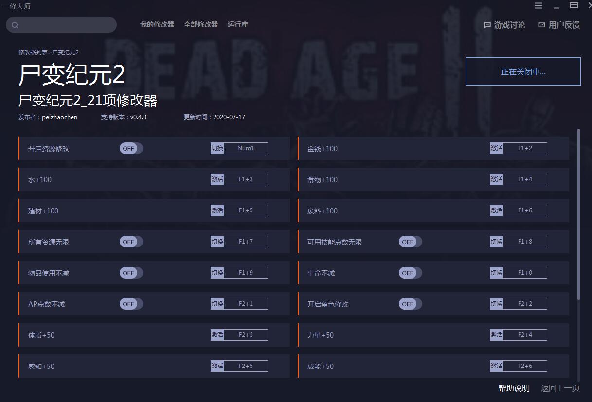 好了,今天的《尸变纪元2》二十一项修改器分享就到这里了,想要下载更多类型的单机游戏和了解更多游戏辅助软件就来游戏爱好者,在这里你可以下载到各种风格的游戏相关辅助,快快收藏吧,更多精彩不容错过!