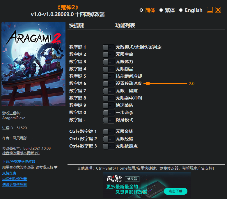 喜欢小编为你带来的《荒神2》十四项修改器风灵月影版吗,喜欢的话就快来游戏爱好者逛一逛吧!让你能够发现更多精彩的内容,小编还会为你提供更多相关的游戏辅助软件,让小伙伴们就算不是游戏大神也能够肆意享受游戏乐趣。