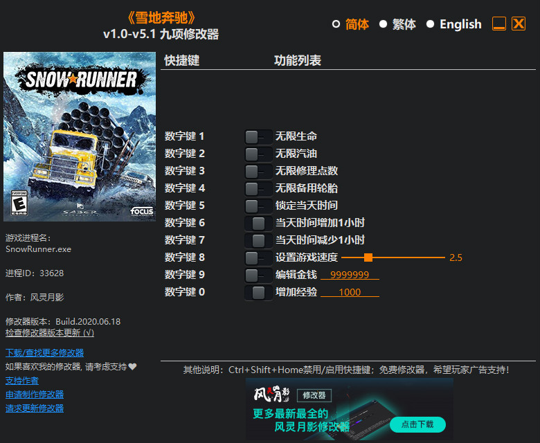 好了,今天的《雪地奔驰》九项修改器风灵月影版分享就到这里了,想要下载更多类型的单机游戏和了解更多游戏辅助软件就来游戏爱好者,在这里你可以下载到各种风格的游戏相关辅助,快快收藏吧,更多精彩不容错过!