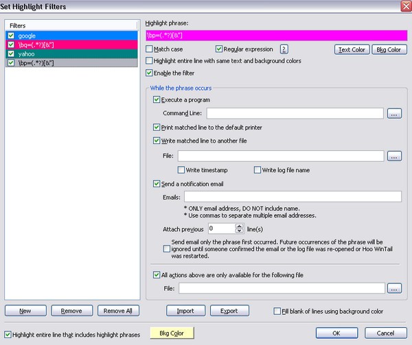 拥有高亮过滤器和包括/解除过滤器的正则表达式