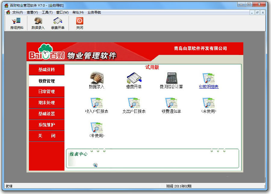 百财物业管理软件囊括基础资料,收费管理,日常管理,期末处理,基础设置,系统维护等多个方面的功能特色,同步也会引导大家去形成统一的数据沟通,以促进物业各种常态化信息沟通或者内容调整等多方面的信息维护,促使用户们也保持足够的信息清醒认知力度,尤其是平时的功能性保障令人放心。