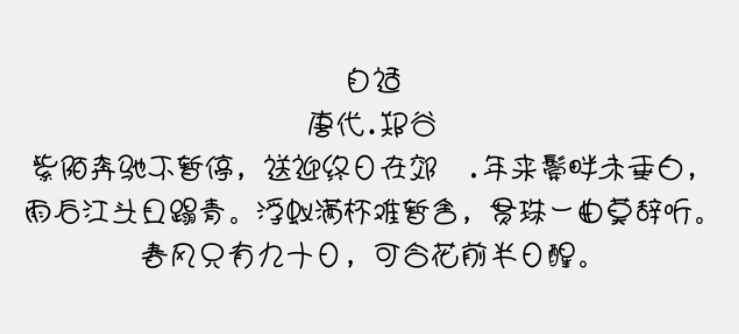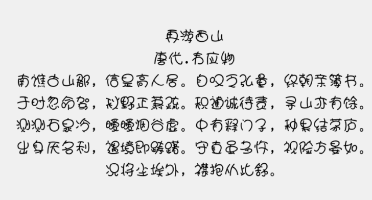 造型更独特,字形不是那么规矩,整体看上去更富童趣,更有孩子的天真与活泼,一看到迷你简娃娃篆,就好像看到一位小孩子在旁边书写,通过该软件重温自己的童年时光。造型活泼,笔画较为复杂,识别起来还是有一定难度的,你可以将该字体用在设计上面。