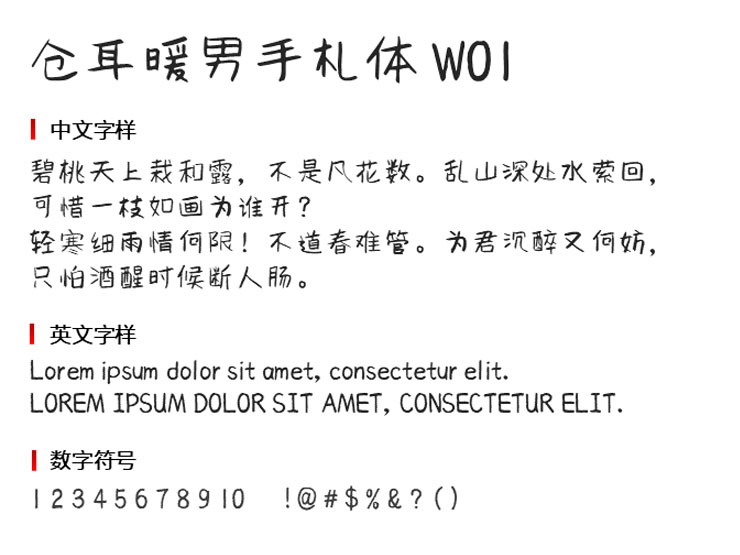 笔画粗细对比明显,笔画变化更多端,字形圆润,整体看上去更和谐,看着一点都不显得违和,仓耳暖男手札体结构更灵活,也非常多变,整体看上去更灵动,一点都不显得死板。运用软笔书写,特点更明显,整体呈现出的效果更可爱,笔画简洁,识别起来更简单。