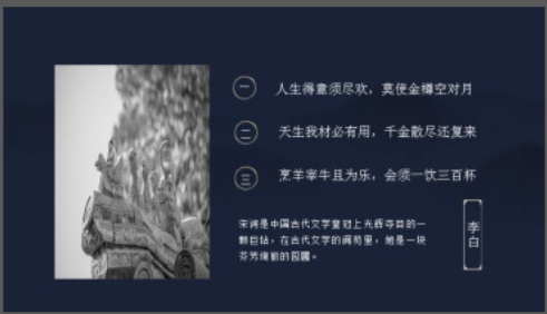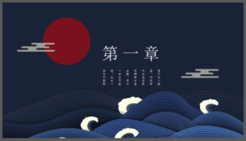 使用较为深沉的蓝色作为背景颜色,整体看上去更严肃,看着更显稳重,给人的感觉更可靠,看着更觉靠谱,使用海涛作为背景图案,整体看上去更大气。蓝色海涛背景的古典风PPT模板修饰元素更具古典韵味,整体看上去更典雅,看着更优雅,展现出较为明显的中国风。