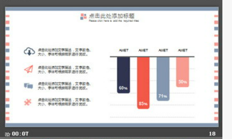 颜色简单,色彩搭配和谐,整体看上去更自然,看着没有任何违和之处,界面简洁,没有多余的修饰元素,整体看上去更觉清爽。简洁蓝橙条纹通用商务PPT模板呈现出较为明显的商务风格,整体看上去显得干练,整体看上去也显得更加专业。