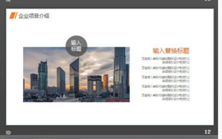 使用商业建筑作为背景,风格大气,整体看上去更觉大方,看着也非常得体,颜色简单,色彩柔和,整体看上去更觉亲切,看着温柔。大气商业建筑背景企业宣传公司简介PPT模板使用一些彩色作为修饰,整体看上去更活泼,看着也非常有活力,看着精神。