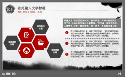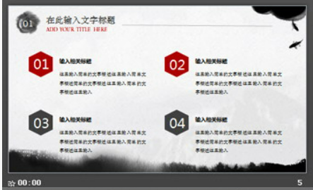 颜色浅淡,色彩柔和,整体看上去更觉顺眼,看着也非常得体,带有严肃的气息,用在那些正式场合不觉违和,整体看上去更有气势。水墨中国风年终工作总结PPT模板背景呈现出较为明显的水墨风,整体看上去更有创意,看着也非常有个性。