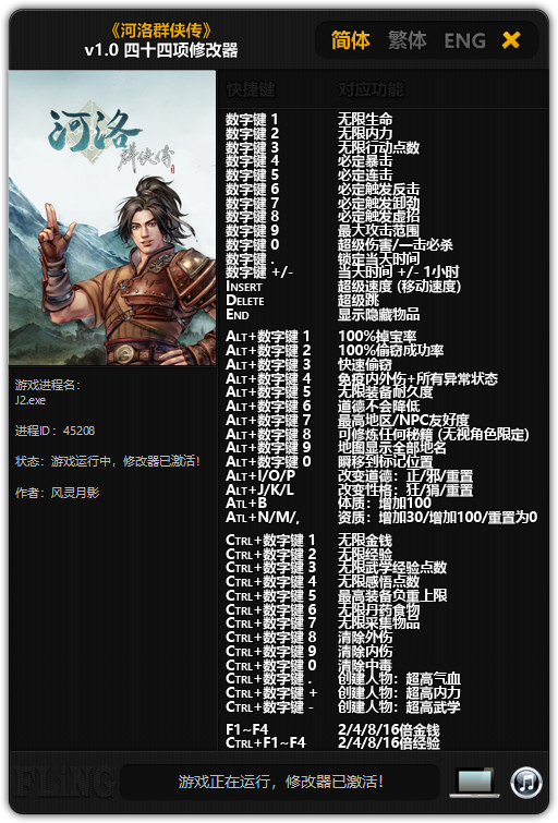 点击简体、繁体、English,可以切换语言 (切换语言后修改器将把该语言设置为默认语言)